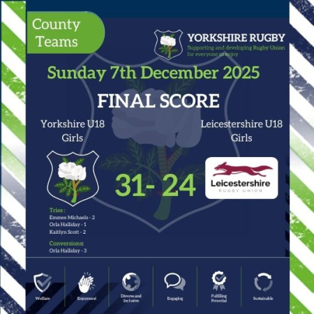 Yorkshire U18 Girls put in a determined and physical performance to claim a 31–24 victory over Leicestershire at Sandal RUFC.