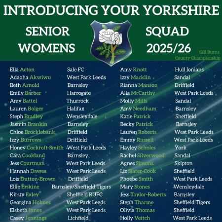 Yorkshire RFU is proud to announce the Senior Women’s squad selected to compete in the 2025/26 County Championship.